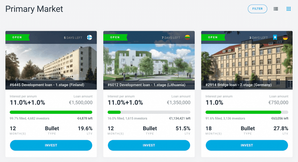 Tarkista ensimmäiseksi Päämarkkina (englanniksi ”Primary Market”) välilehdeltä avoinna olevat sijoituskohteet ja tutustu mielenkiintoisiin kohteisiin huolella ennen sijoittamista.