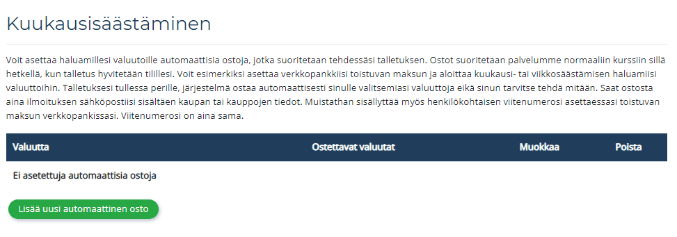 Käyttäjät kehuvat helppokäyttöisyyttä, suomenkielistä tukea ja kuukausisäästön vaivattomuutta. Kritiikki kohdistuu kuluisiin ja siihen, ettei palvelu ole halvin tai kolikkovalikoima rajaton verrattuna jättipörsseihin.