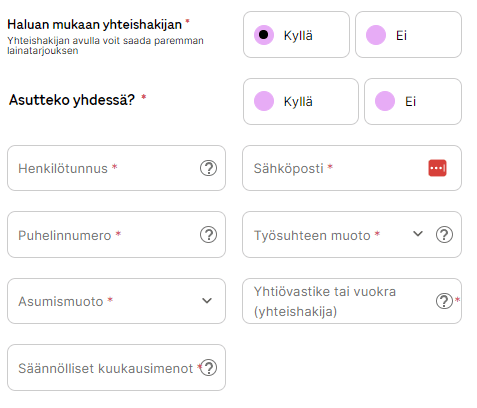 Ilmoita haluavasi hakea yhteislainaa