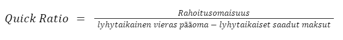 Yrityksen kykyä selviytyä lyhytaikaisista veloistaan voidaan testata Quick Ratio-nimisellä tunnusluvulla.