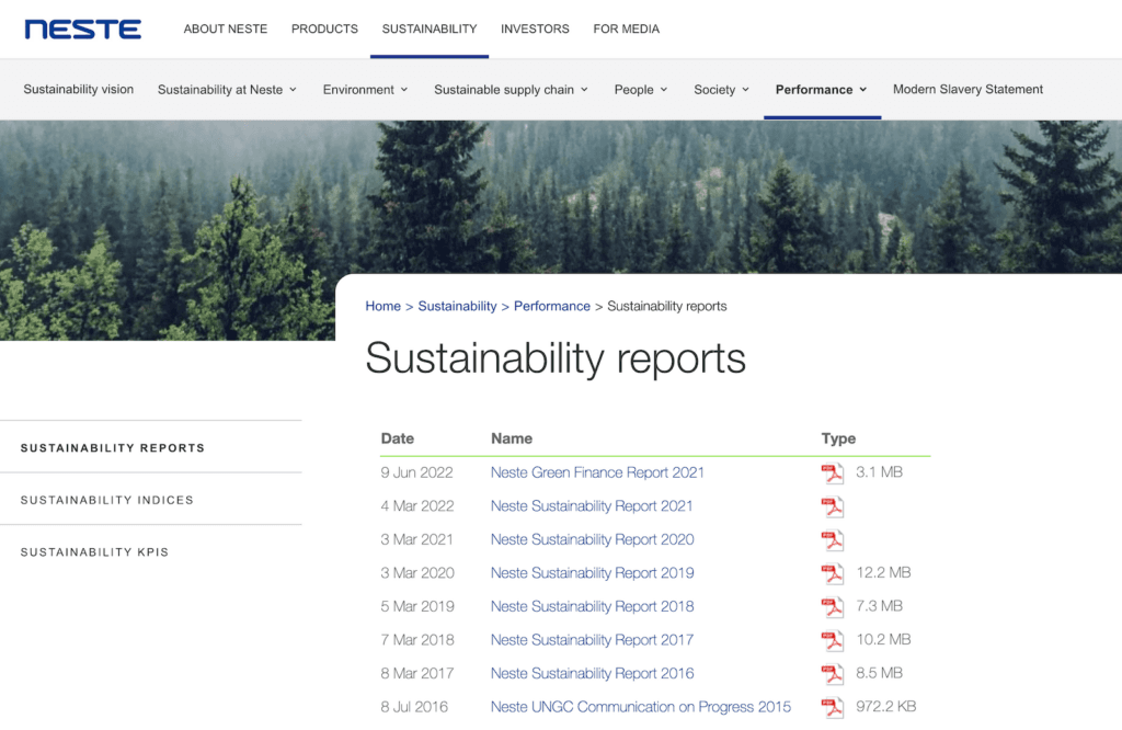 Neste Oyj on suomalainen öljynjalostaja ja markkinoija. Vaikka yhtiö toimii fossiilisten polttoaineiden tuottajana, on yhtiö silti palkittu eräänä globaalisti vastuullisimpia yhtiöitä. Tätä edistävät ennen kaikkea yhtiön sitoutumiset tiukkoihin päästötavoitteisiin oman toimintansa sekä tuotteidensa osalta.