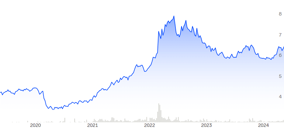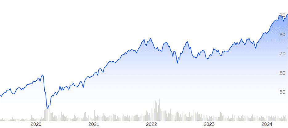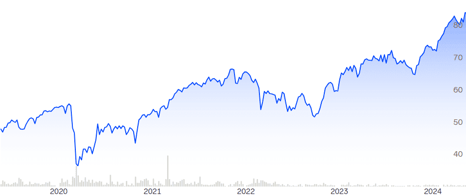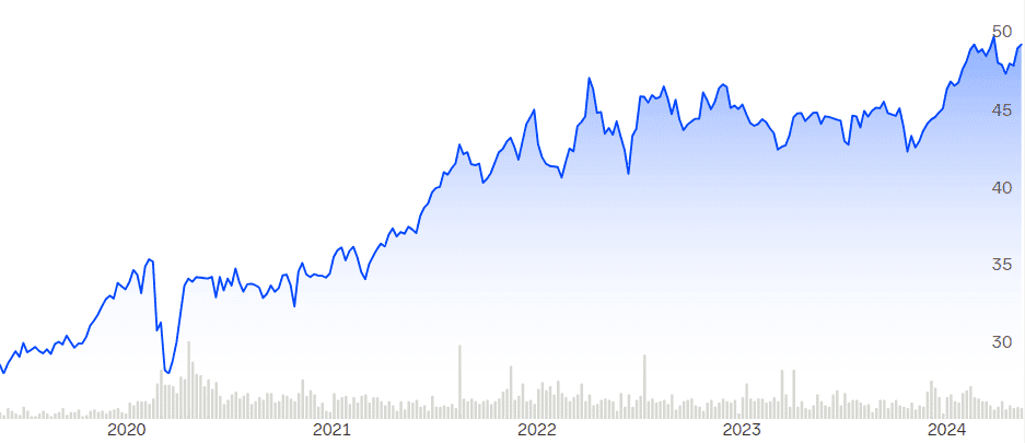 Mikäli haluat madaltaa salkkusi volatiliteettia lisäämällä altistusta historiallisesti vakaalle toimialalle, on tämä ETF-rahasto eräs parhaita siihen tarkoitukseen.